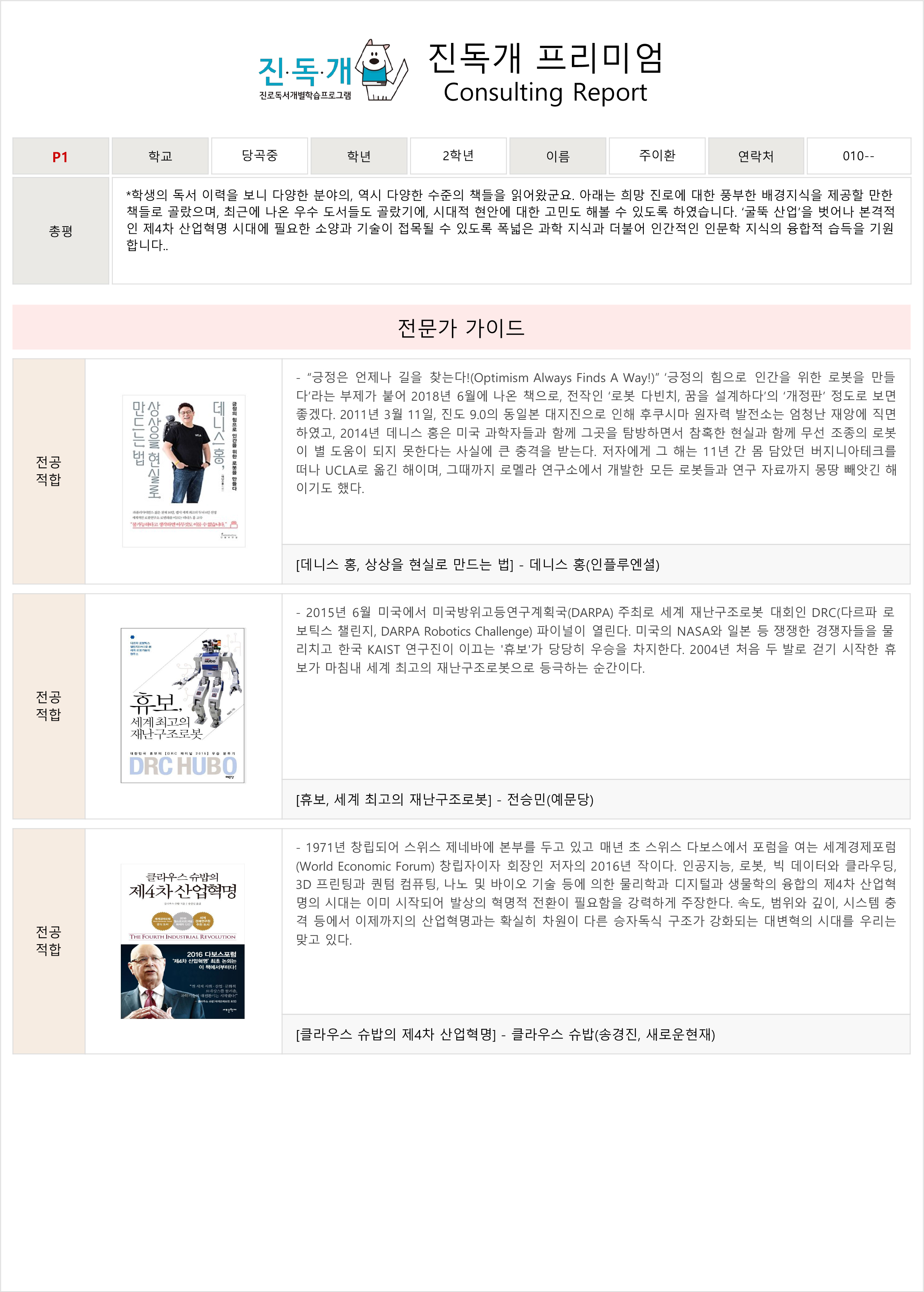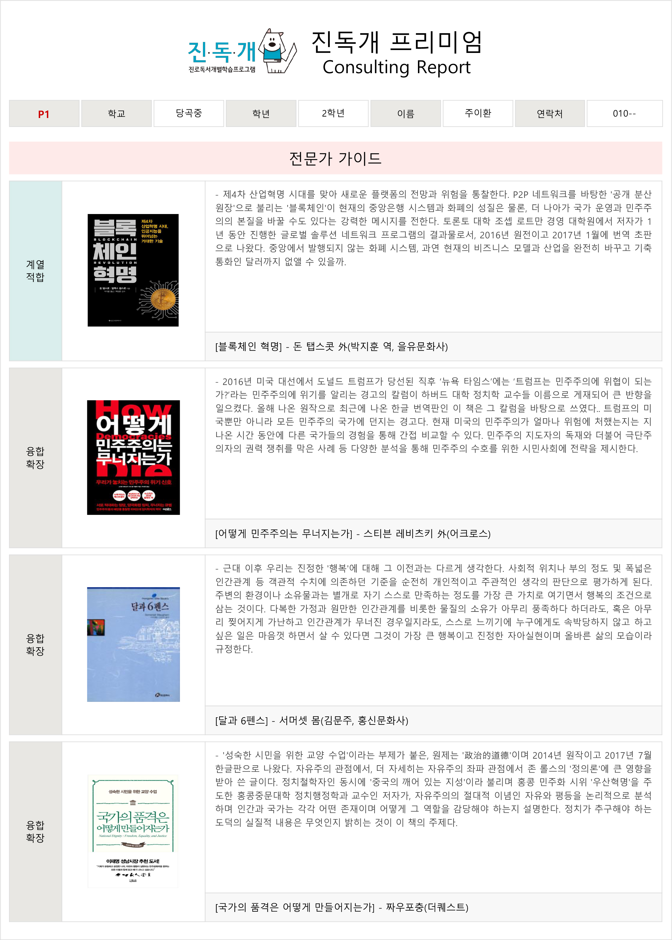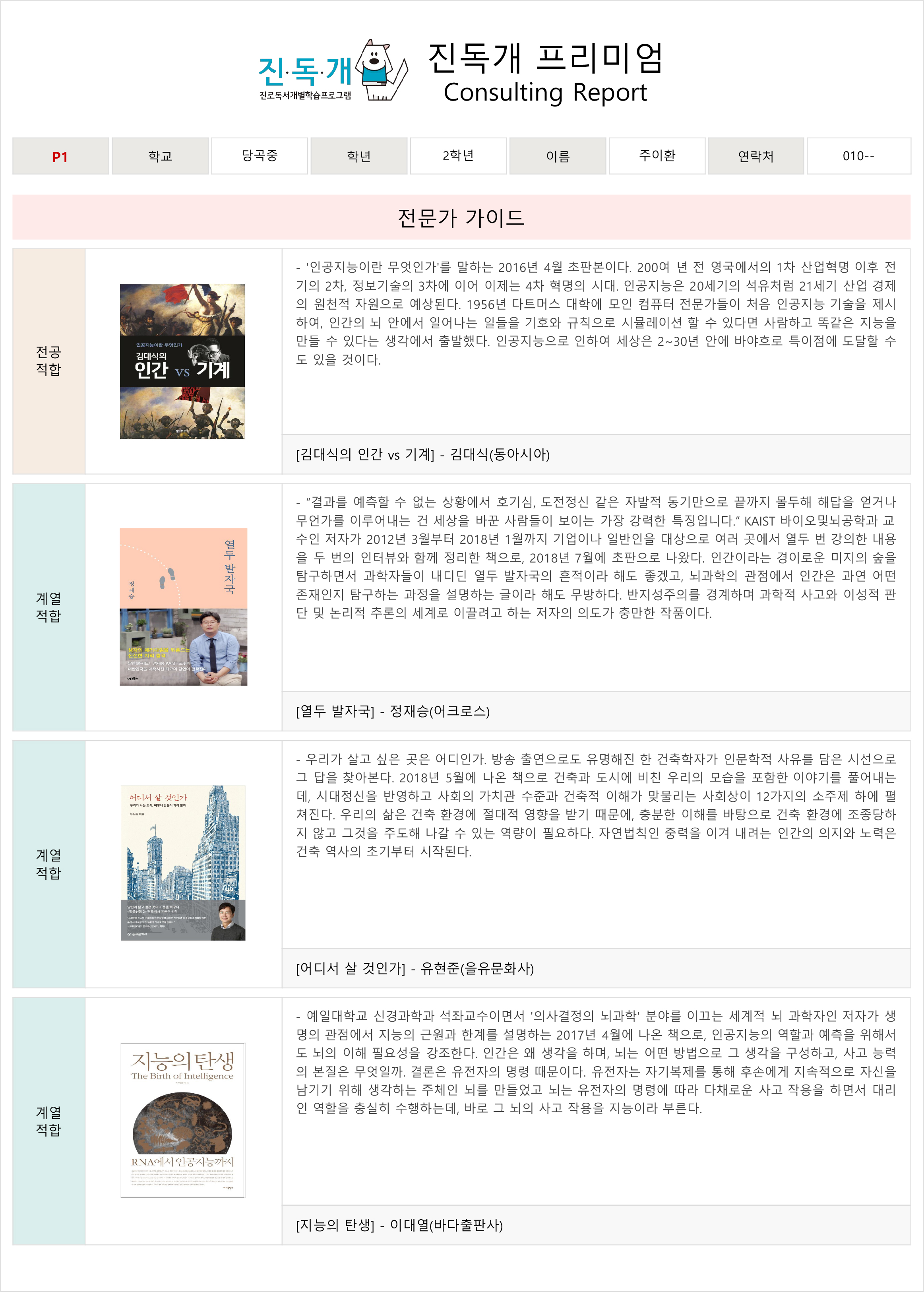 과거 1년간 신청자가 읽은 도서리스트를 입력하면 전문가가 직접 분석하고